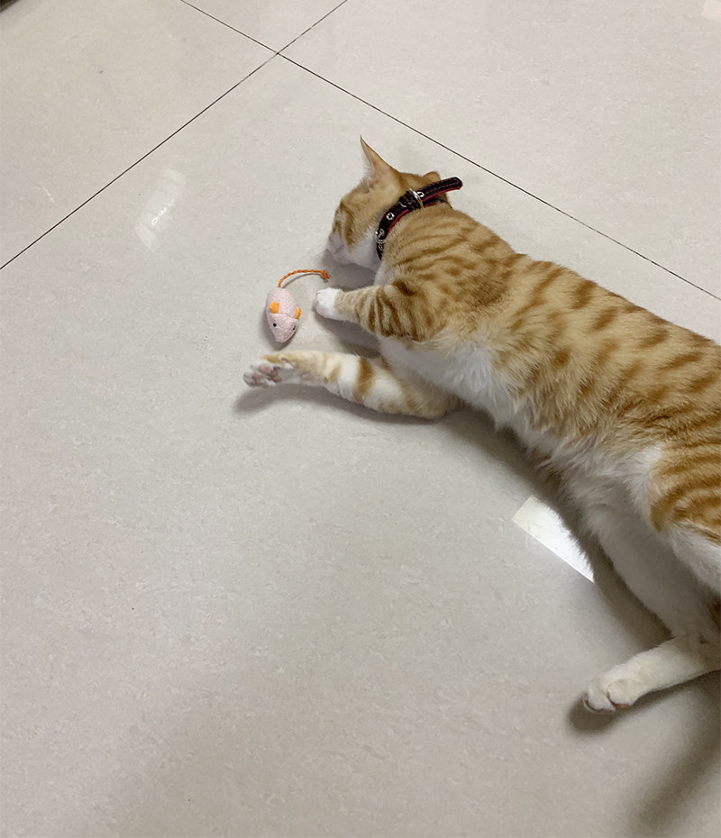 軽量で柔らかい素材なので、愛猫が夢中で追いかけたり抱え込んで蹴ったりと、室内でも安心して活発に運動できます。