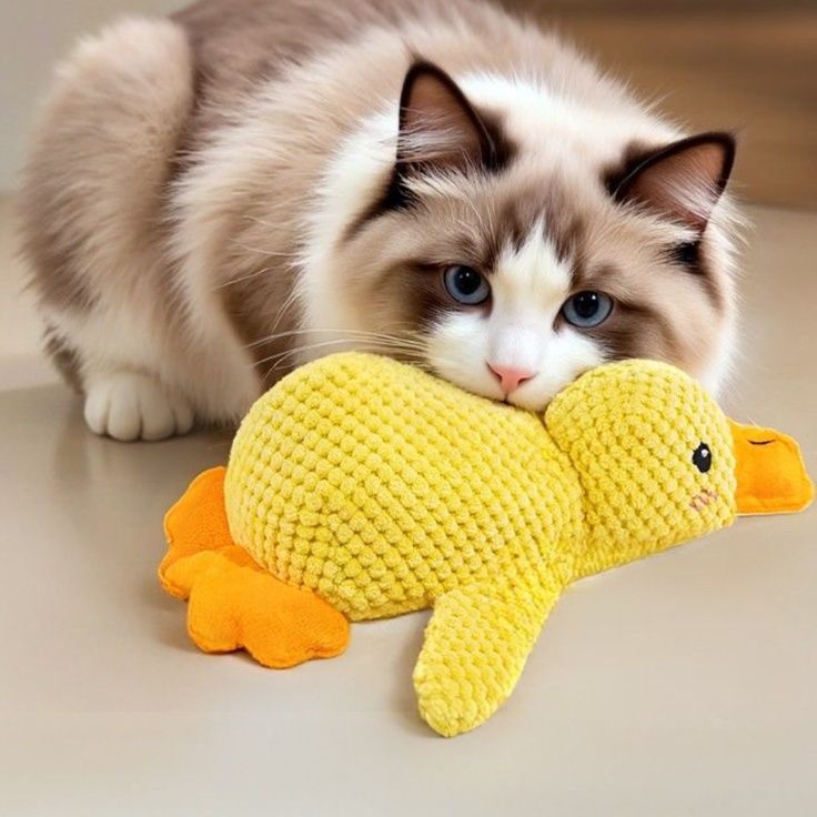 愛猫の運動不足とデンタルケアを同時に解決できる猫グッズです。 かわいいあひる型のぬいぐるみは抱きつきやすいサイズ感で、猫ちゃんが蹴ったり噛んだりして遊ぶことで自然と運動不足解消に繋がります。 表面の凹凸素材が歯垢除去をサポートし、遊びながら歯磨き効果も期待できます。 中には猫の興味を引く響き紙入りで、飽きずに長く遊べる運動不足解消グッズです。