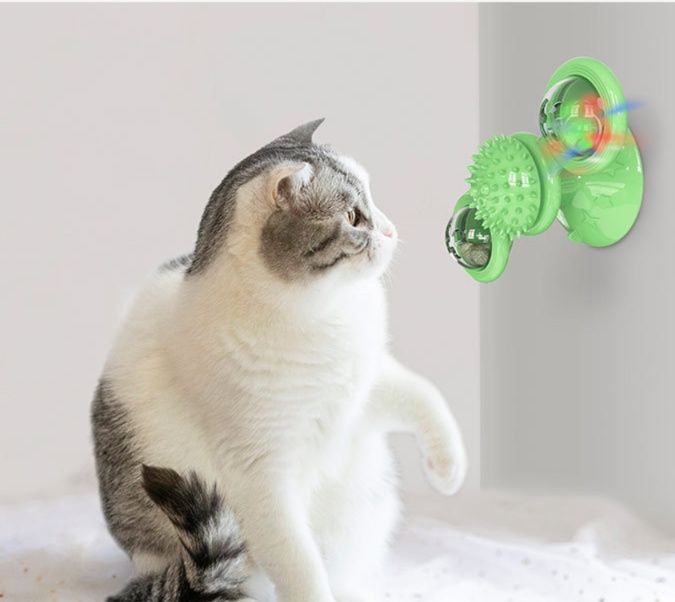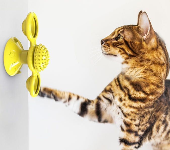 愛猫の運動不足解消グッズとして最適な猫グッズです。 吸盤式で床や壁に固定でき、回転する風車型のボールと突起付きブラシが猫の狩猟本能を刺激します。 透明ドーム内のボールがくるくる回転し、猫が夢中で遊びながら全身運動ができます。 蹴りぐるみ、歯磨き、ストレス解消など一台で多機能を実現した画期的な運動不足解消グッズです。 室内飼いの猫ちゃんの健康維持に役立ちます。