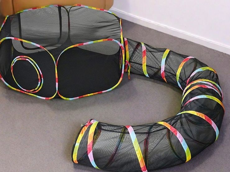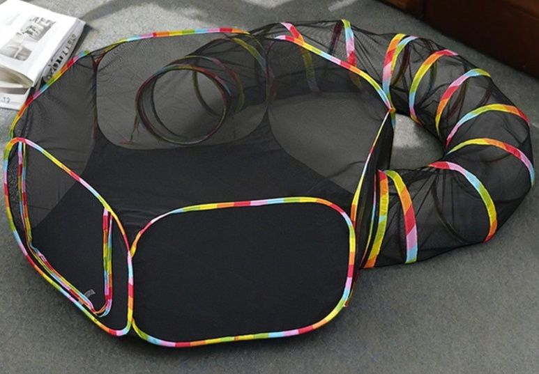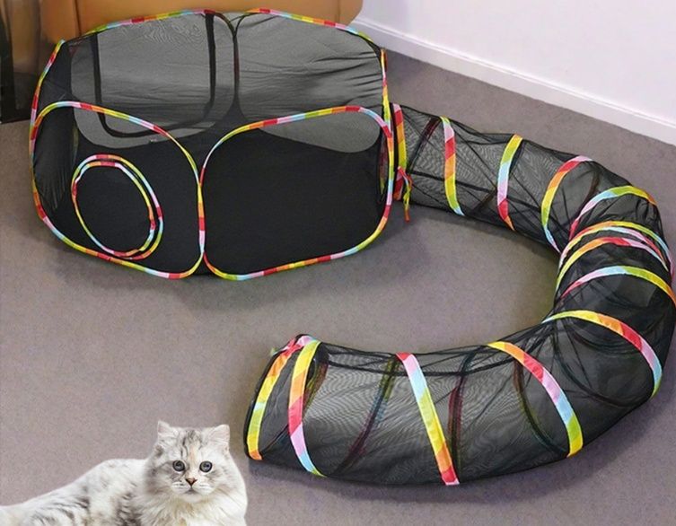 愛猫の好奇心を刺激する猫グッズの運動不足解消グッズです。 広々とした休憩スペースと長いトンネルを組み合わせた設計で、猫ちゃんが自由に出入りして遊べます。 複数の穴から顔を出したり、トンネル内を駆け抜けたりと様々な遊び方が可能です。 折りたたみ式で収納も簡単、室内飼いの猫ちゃんの日々の運動量を確保し健康維持をサポートします。